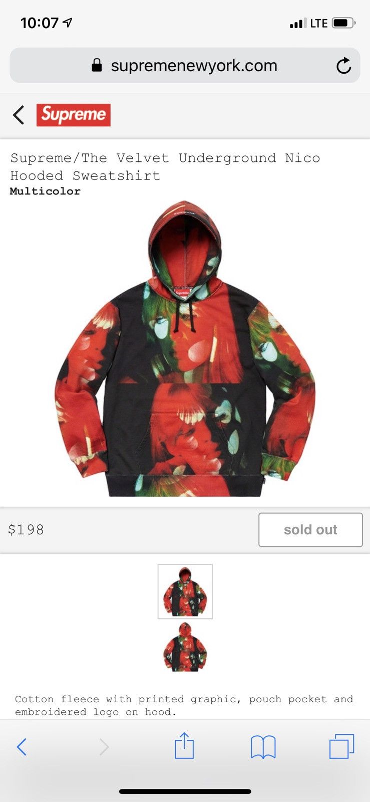 Product Item: Supreme the velvet underground nico deals hooded sweatshirt multicolor